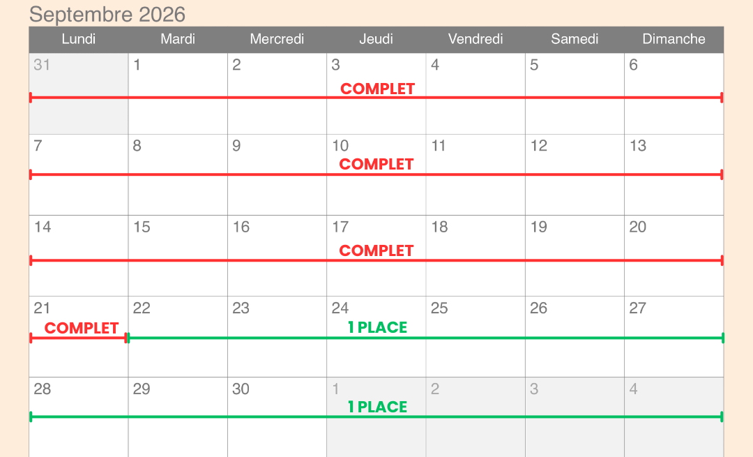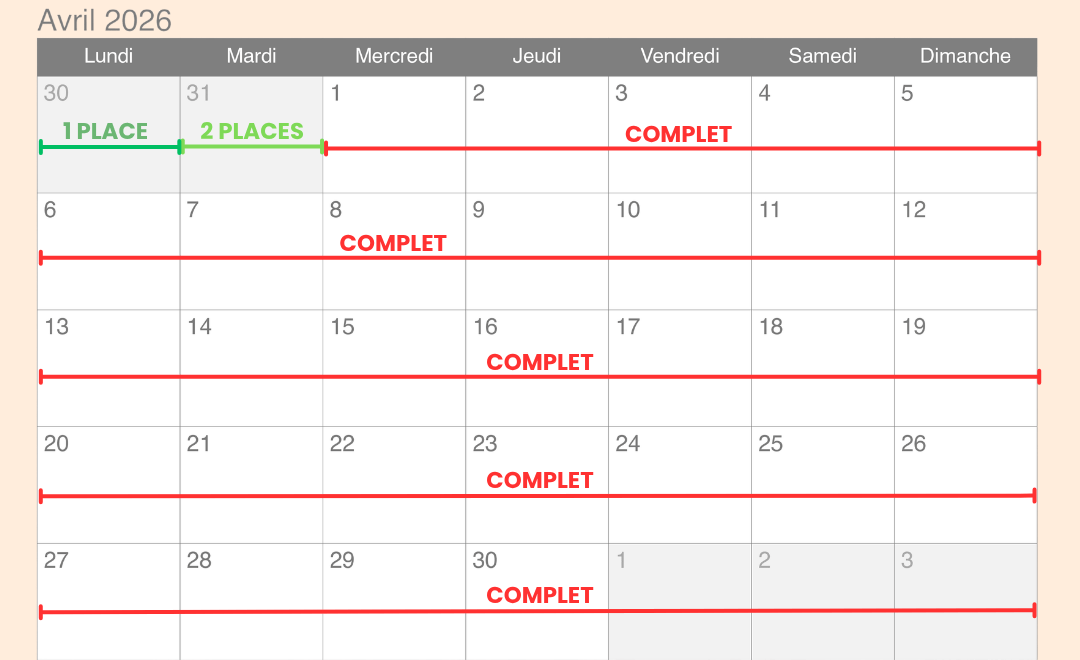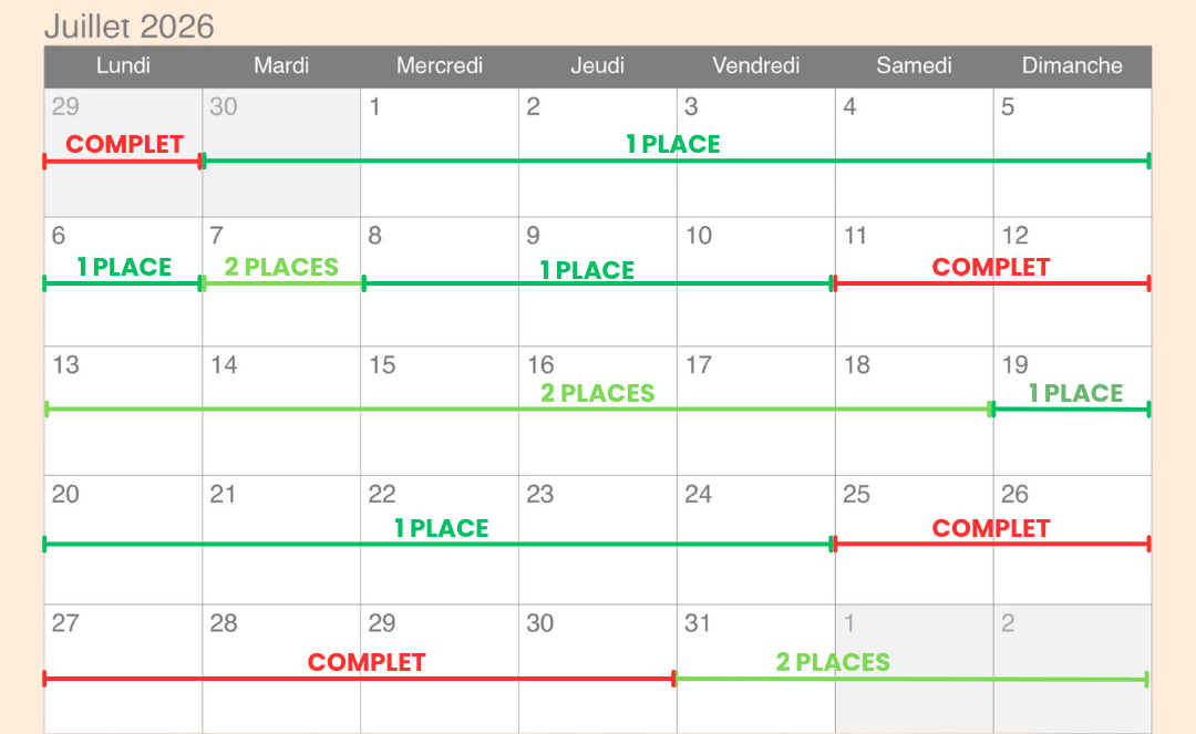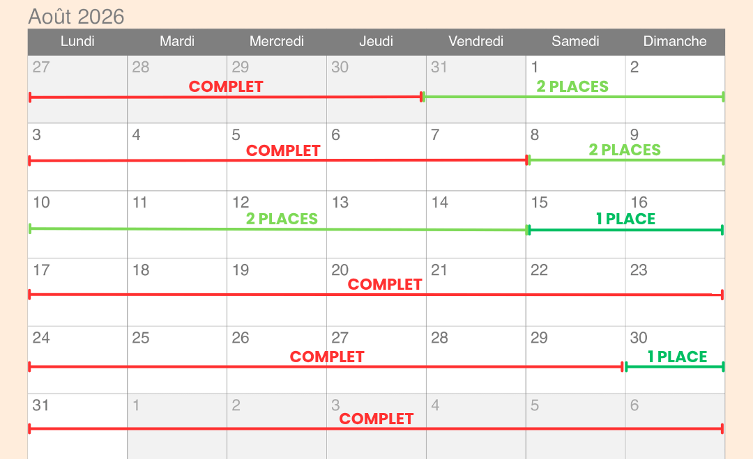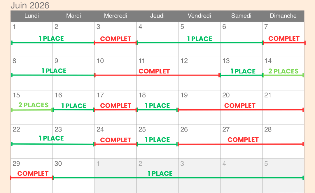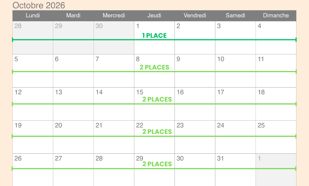 CALENDRIER DES PLACES DISPONIBLES